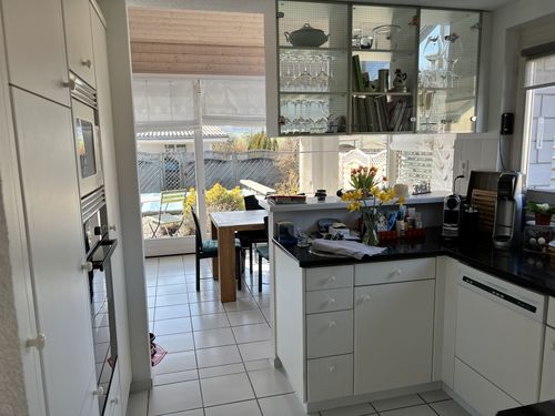 Im Erdgeschoss befinden sich nebst dem Entrée ein Gäste-WC, die Küche (Induktionskochfeld, V-Zug-Geräte) sowie ein wunderbarer, heller Wohn-/Essbereich (elektrische Storen) mit grosser Glasfront und Cheminée, ein mit Parkettboden ausgestattetes Schlafzimmer sowie eine direkt vom Schlafzimmer erschlossene Nasszelle mit WC, Lavabo und kombinierter Badewanne/Dusche. Der Eingangsbereich, die Nasszelle, die Küche sowie der tolle Wohn-/Essbereich sind mit einem Plattenbodenausgestattet. Zwei grosse, Schiebefenster ermöglichen den direkten Ausgang in den Garten/Aussenbereich mit Pool, welcher zum gemütlichen Verweilen einlädt.